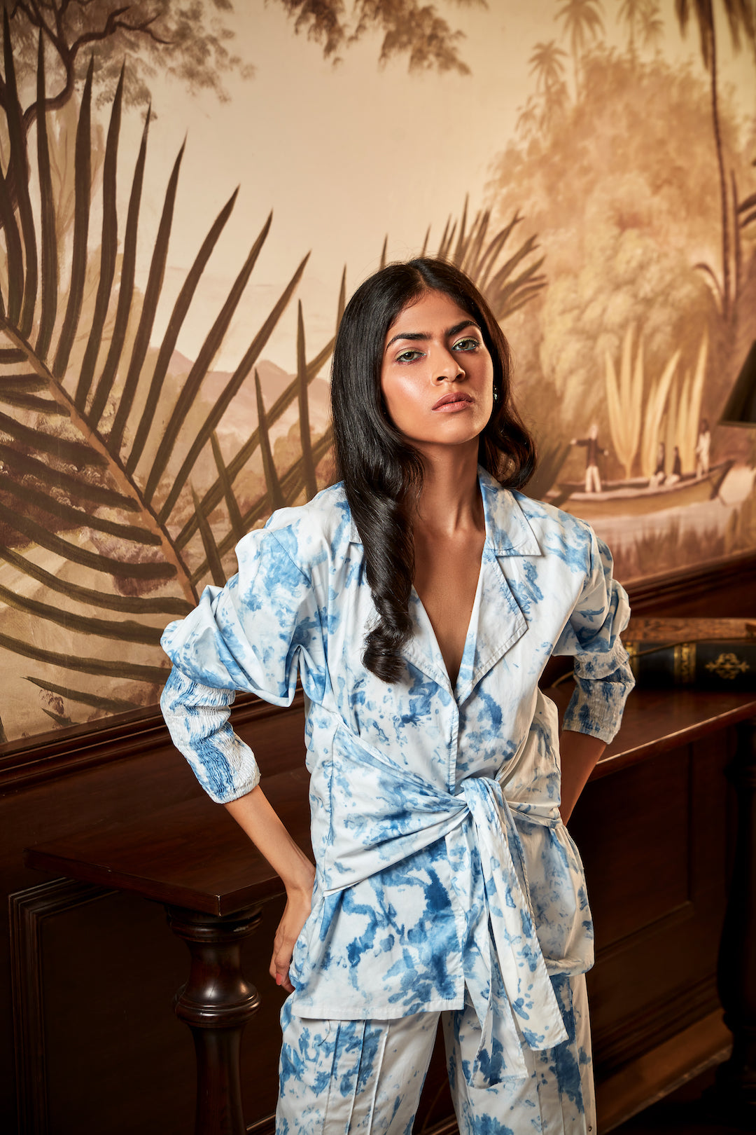 Tye Dye shirt with front knot , with pintuck detailed pants