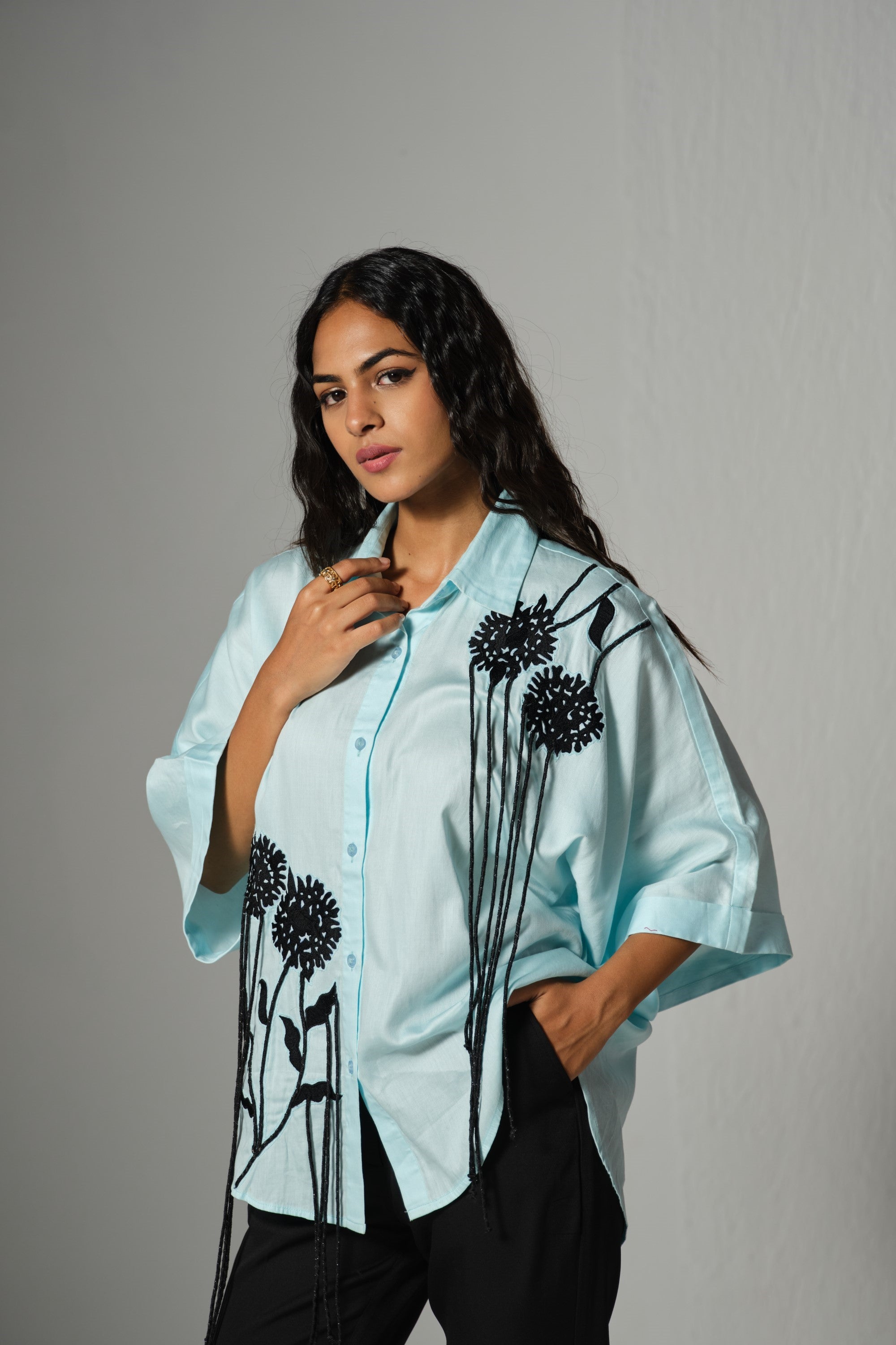 Embrace effortless elegance with the anti-fit cotton shirt, beautifully detailed with intricate black threadwork embroidery. Crafted from soft glace cotton, this piece combines comfort and artistry for a look that’s both relaxed and refined!