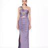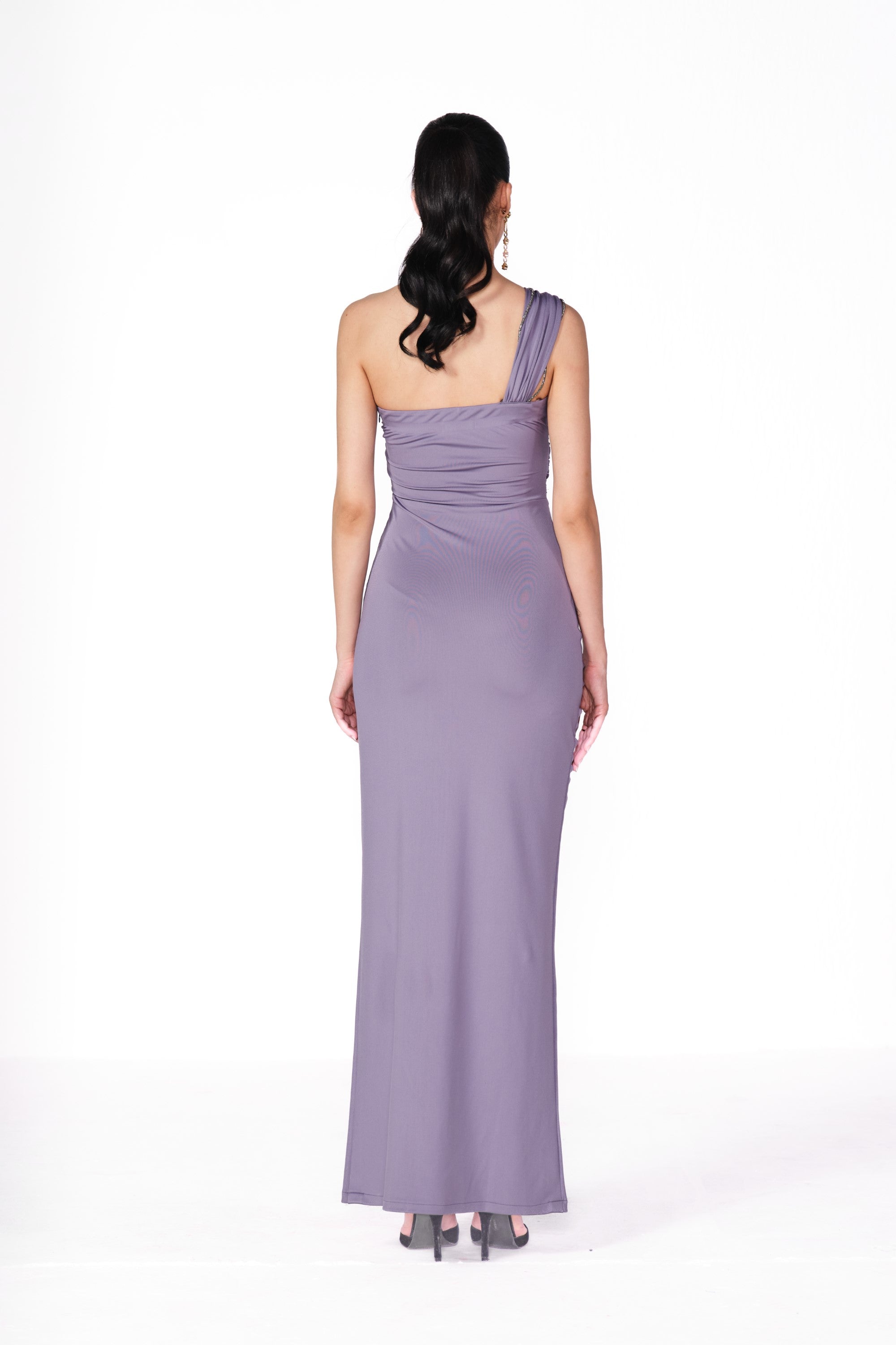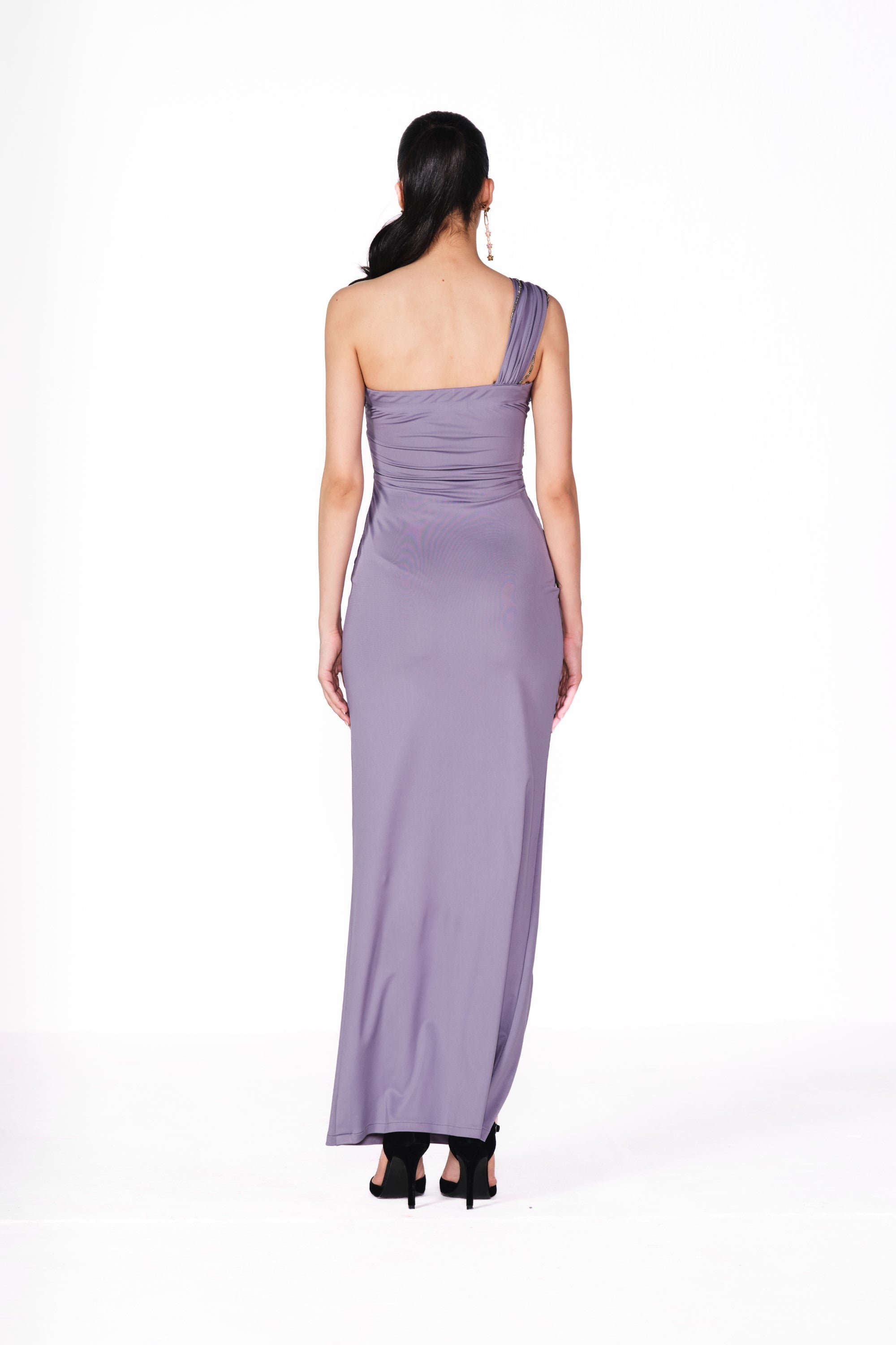 Glow gracefully in the Zella lavender side-cut gathered dress with a stylish slit, accented by delicate string details on the shoulder. Crafted from exclusive lycra, this elegant piece blends soft hues with modern flair for a look that’s effortlessly stunning!