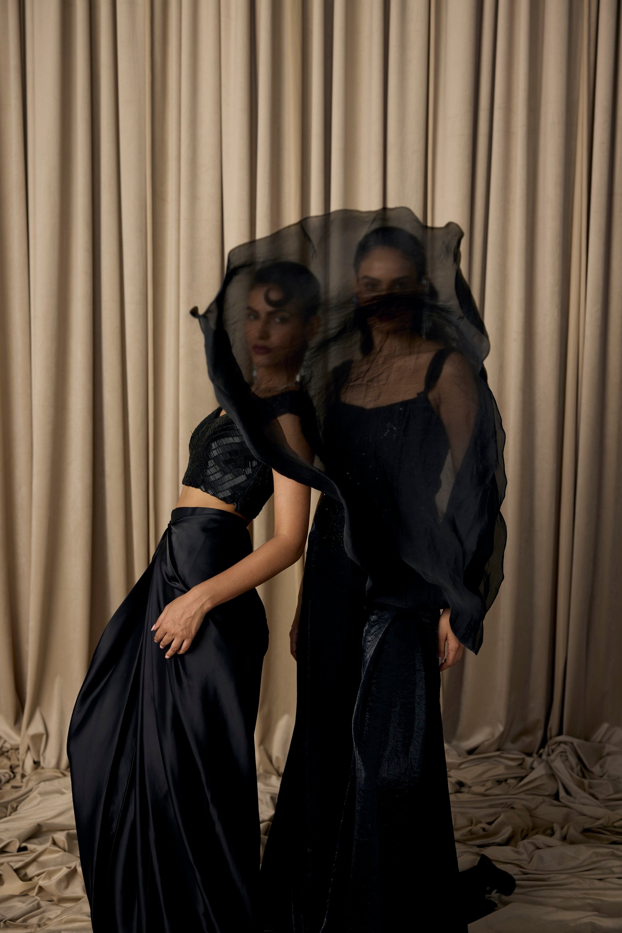 nalki black drape skirt with cape