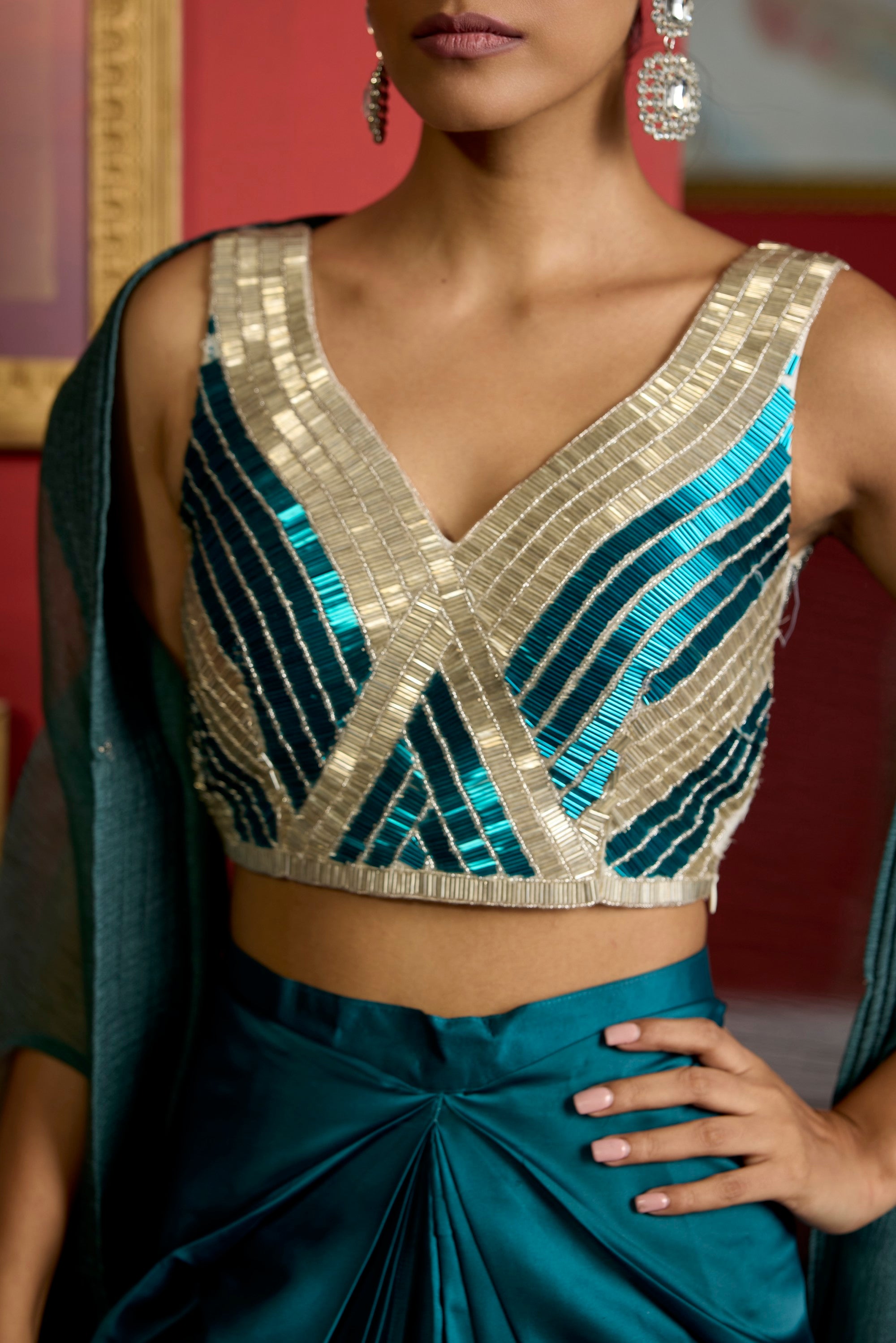 turquoise nalki blouse cape set
