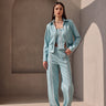 Featuring the ice blue leather zip detaling bustier paired with zip pants , adorned with a leather zipper jacket