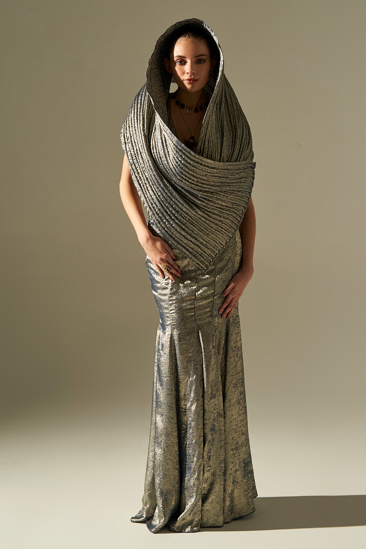 Fabric Composition: Exclusive Metallic Drape Crepe