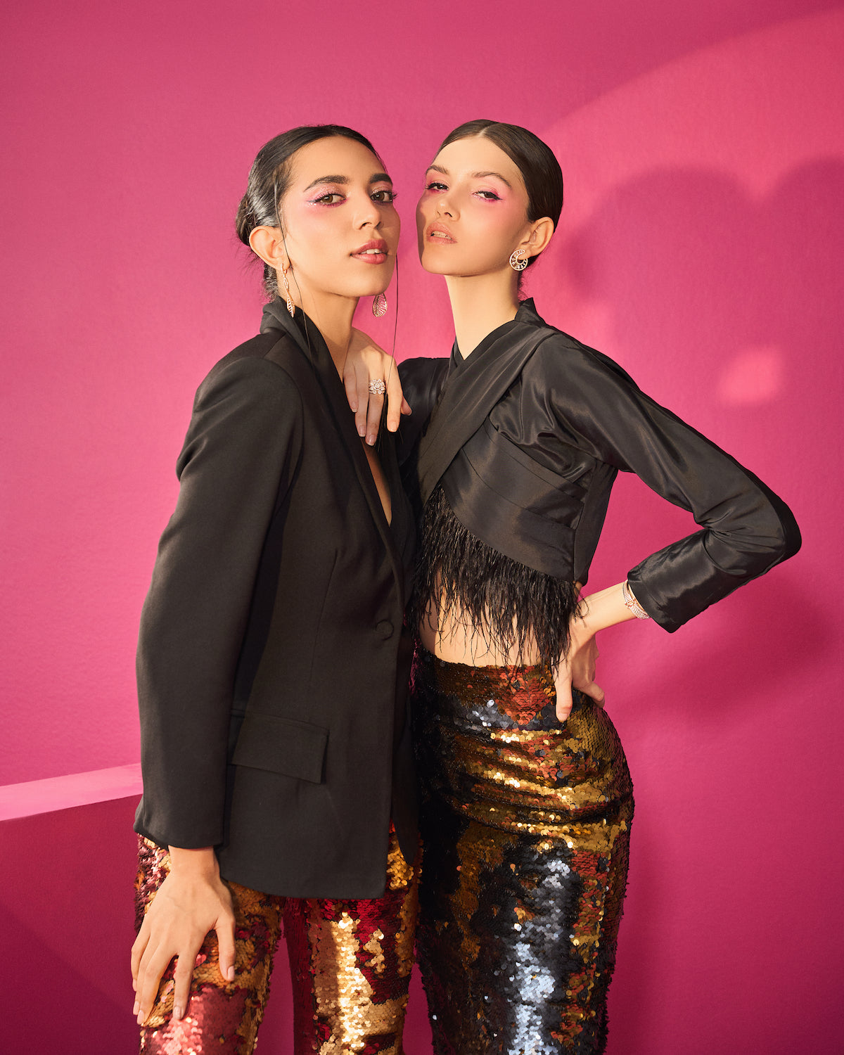 Cross pleat feather top with double shaded sequence
