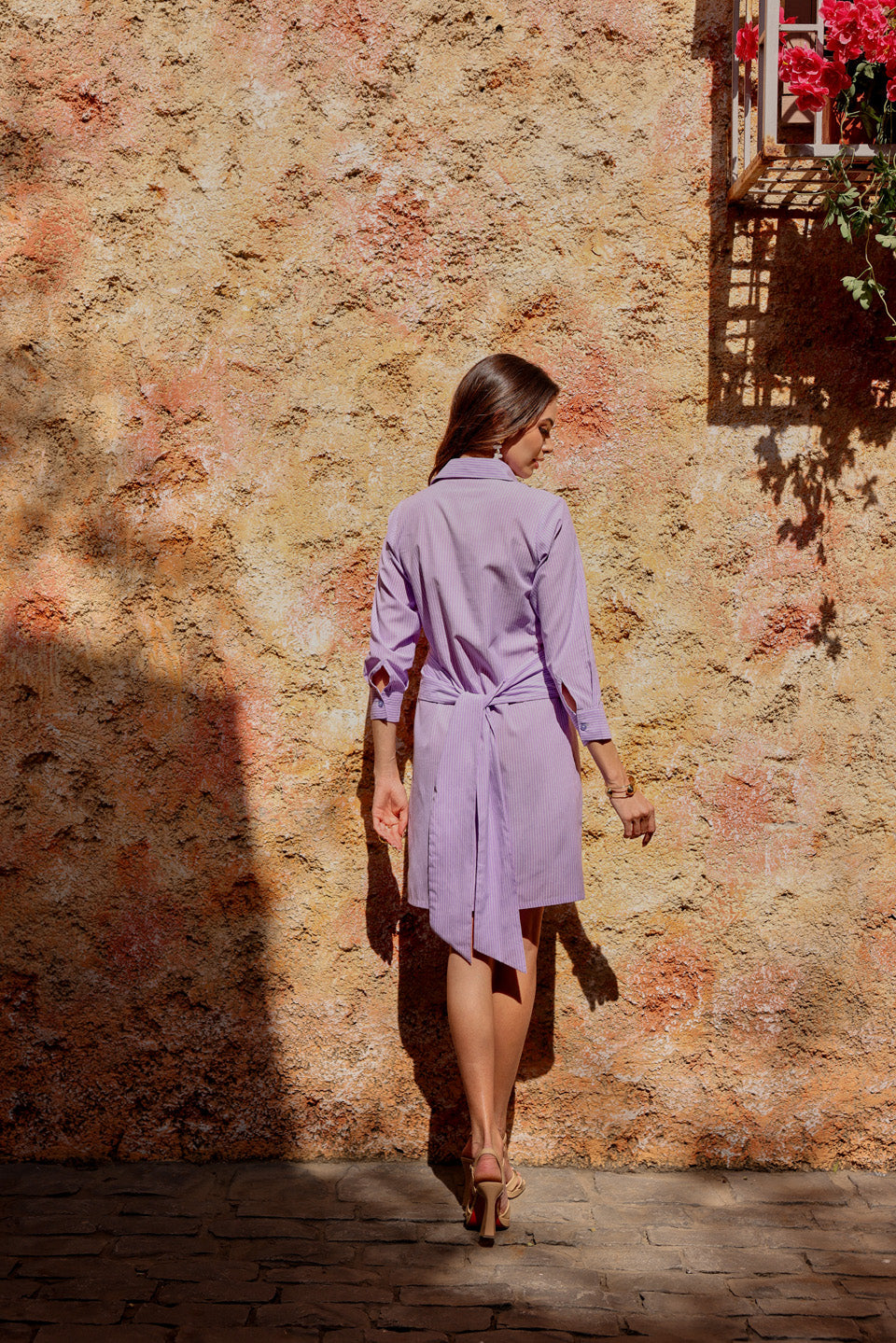 Featuring the perfect summer check out thread work embroidered applique shirt dress-lavender colour.