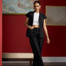 featuring the denim black zip detaling jacket paired with relaxed fit pants